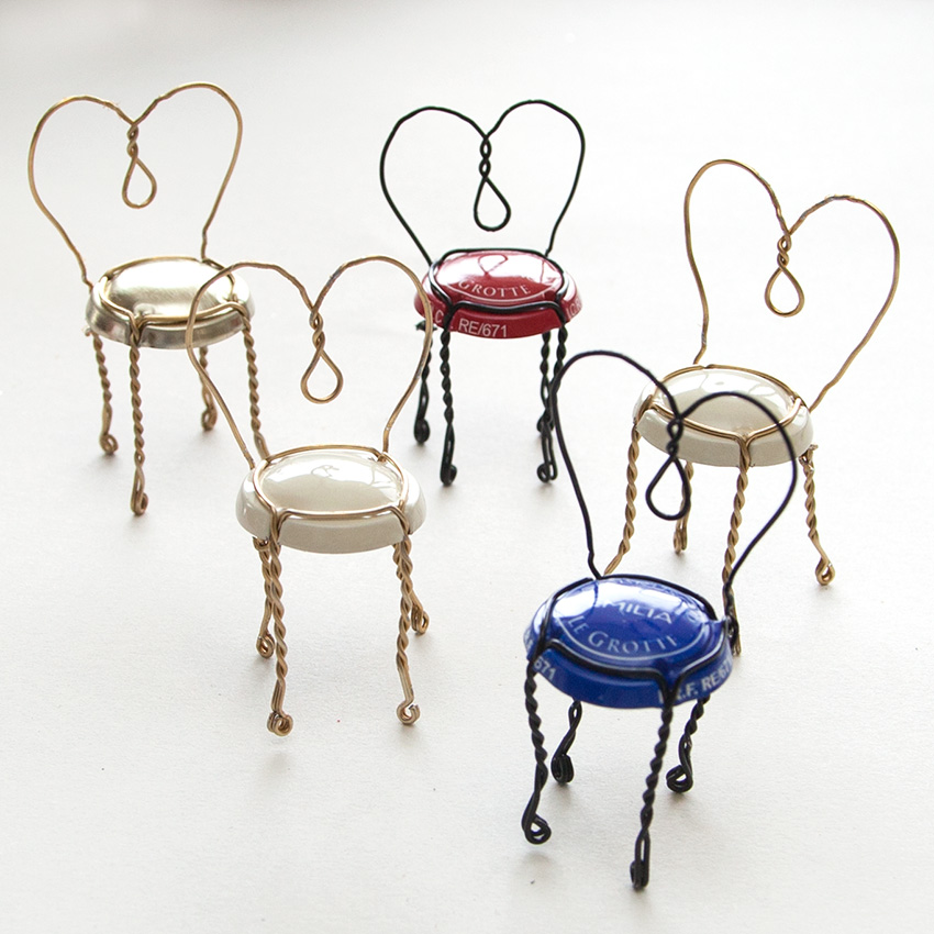 Twist the bottoms of the wire to the legs of the chair to make the back of the chair.DIY Champagne Ornaments by Trinkets in BloomDIY Champagne Ornaments by Trinkets in Bloom
