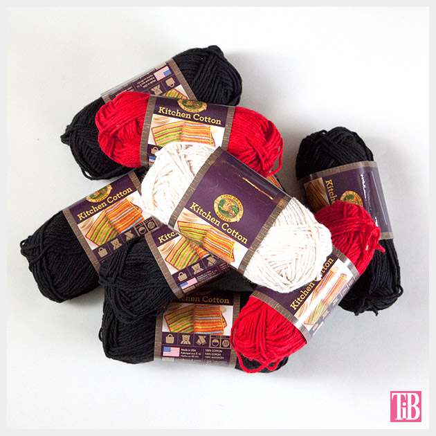 So the awesome people at Lion Brand Yarn were nice enough to send me the yarn. I’m using their Kitchen Cotton, which is a really nice 100% cotton yarn, it’s very easy to work with. I’m using black, red and white to look like the featured top. But as you can see it looks great in lot’s of color combinations. I just knew that I would wear something with black in it the most.