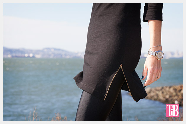 The metal zippers add a touch of contrast and interest to a basic t-shirt dress. There you have it a quick and easy altered t-shirt that’s the perfect addition to your fall wardrobe.