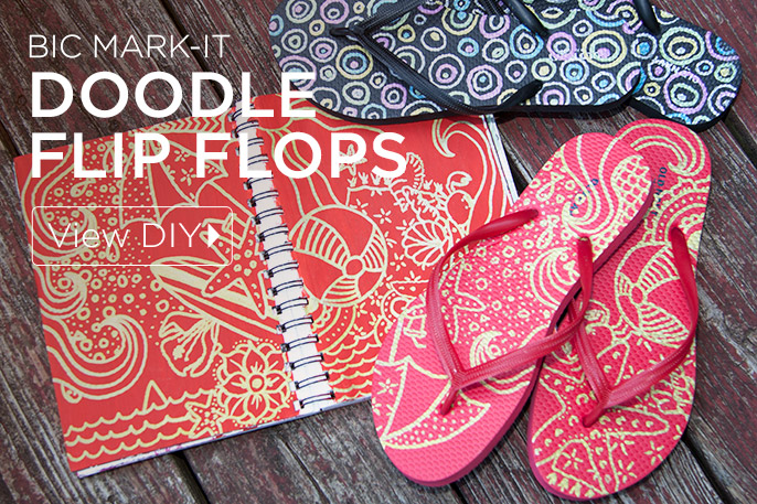 Get ready for summer by creating a pair of cute and fun Doodle Flip Flops with Bic Mark-it Metallic Permanent Markers.